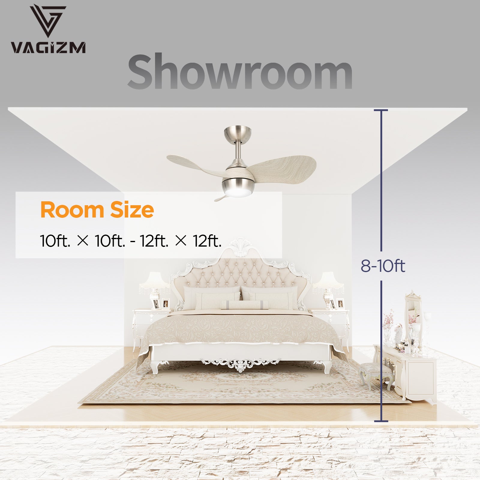 - Quiet Ceiling Fan for Small Room: Our Indoor ceiling fans are perfect for use in relatively small rooms and covered outdoor spaces. Thanks to the 30” size and flush mount design, our design is perfect for nursery or 10ft x 10ft ~ 12ft x 12ft rooms, in bedrooms, kitchens, offices or patios, gazebos and pergolas.