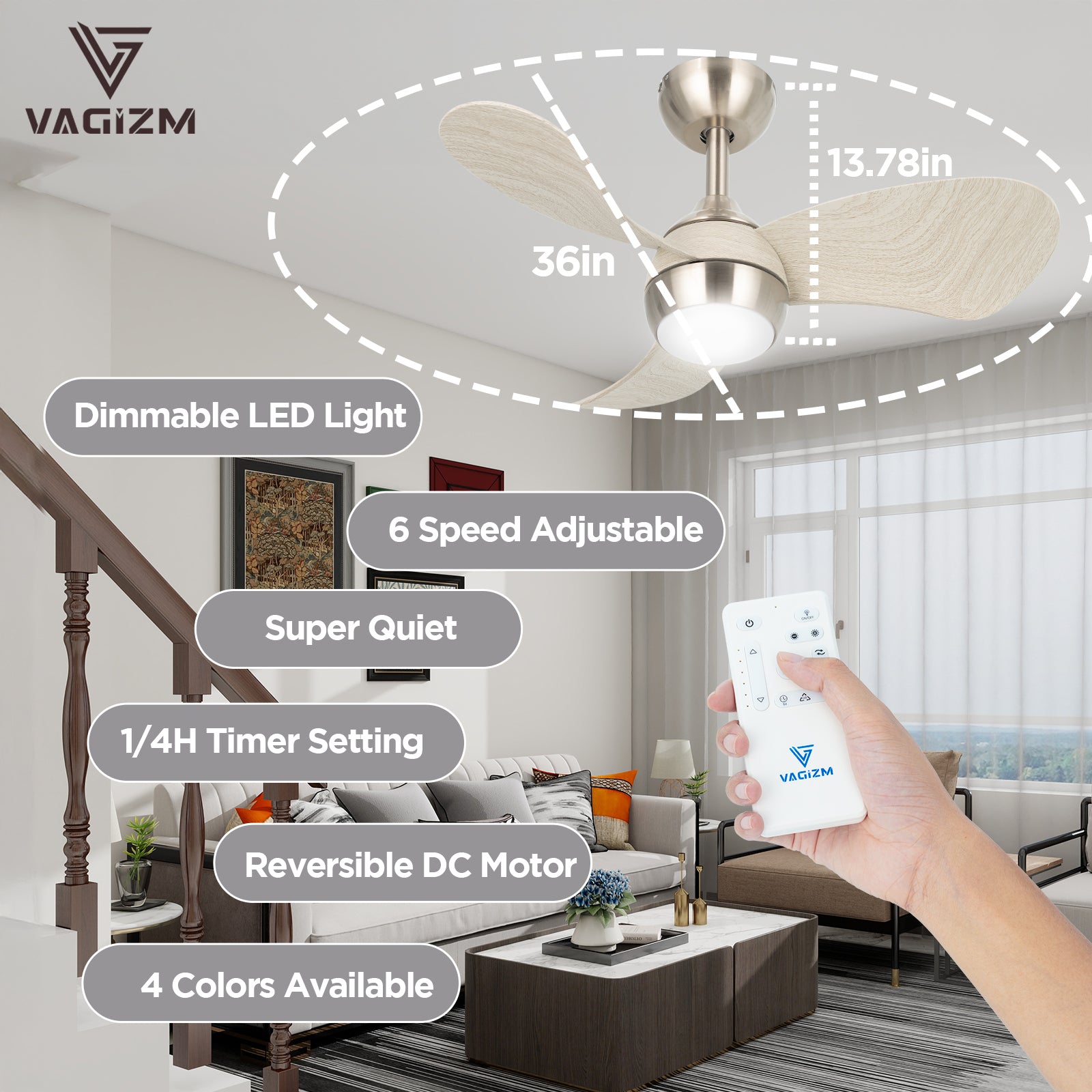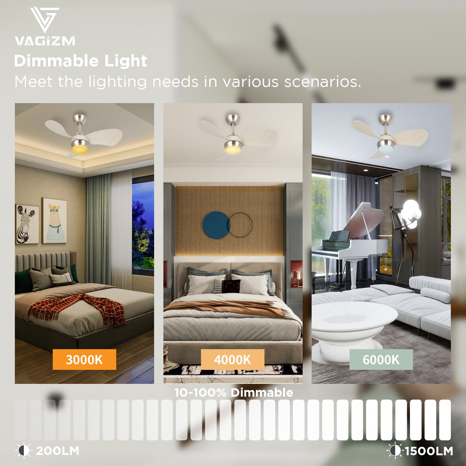 - Small Ceiling Fan: The 30” flush mount ceiling fan with light features a low profile design that eliminates the hanging rod, so you won't bump your head even in small rooms. The small ceiling fan with light and remote is also equipped with a variety of features: light memory, color temperature adjustment, reversible DC motor, timer function and more.