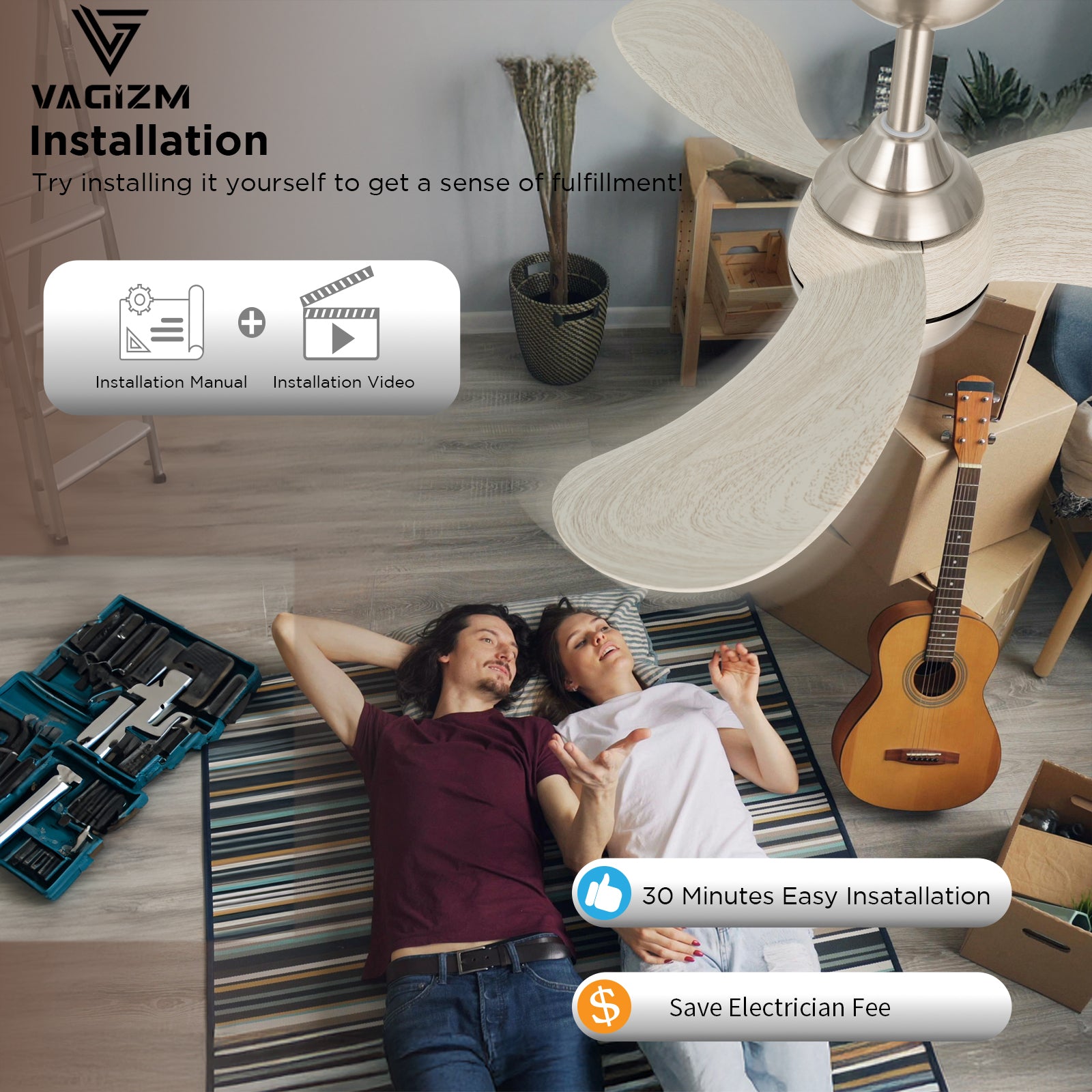 Vagizm 30 Inch Brushed Nickel Modern LED Downrod Mount Indoor Geometric Ceiling Fan with Remote Control