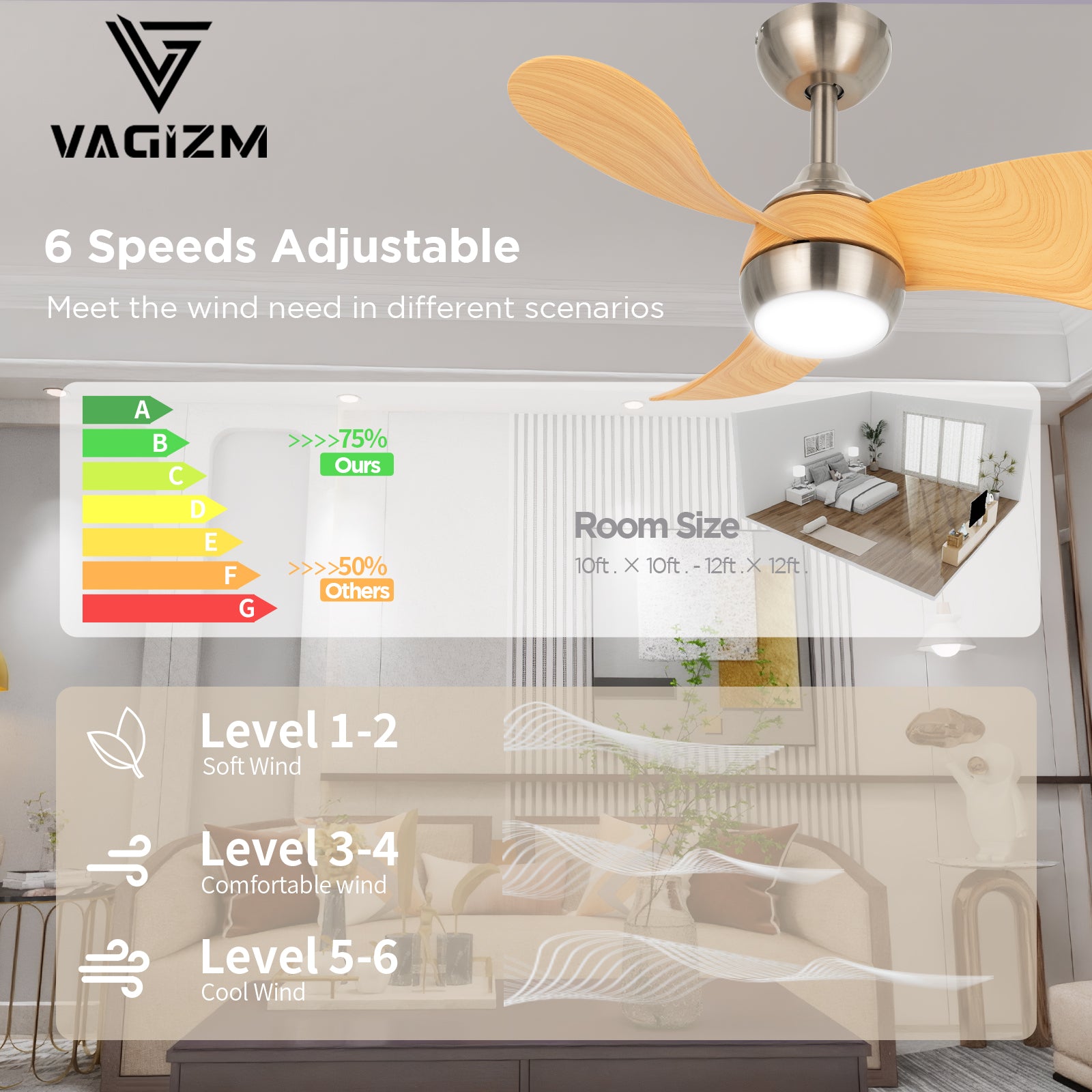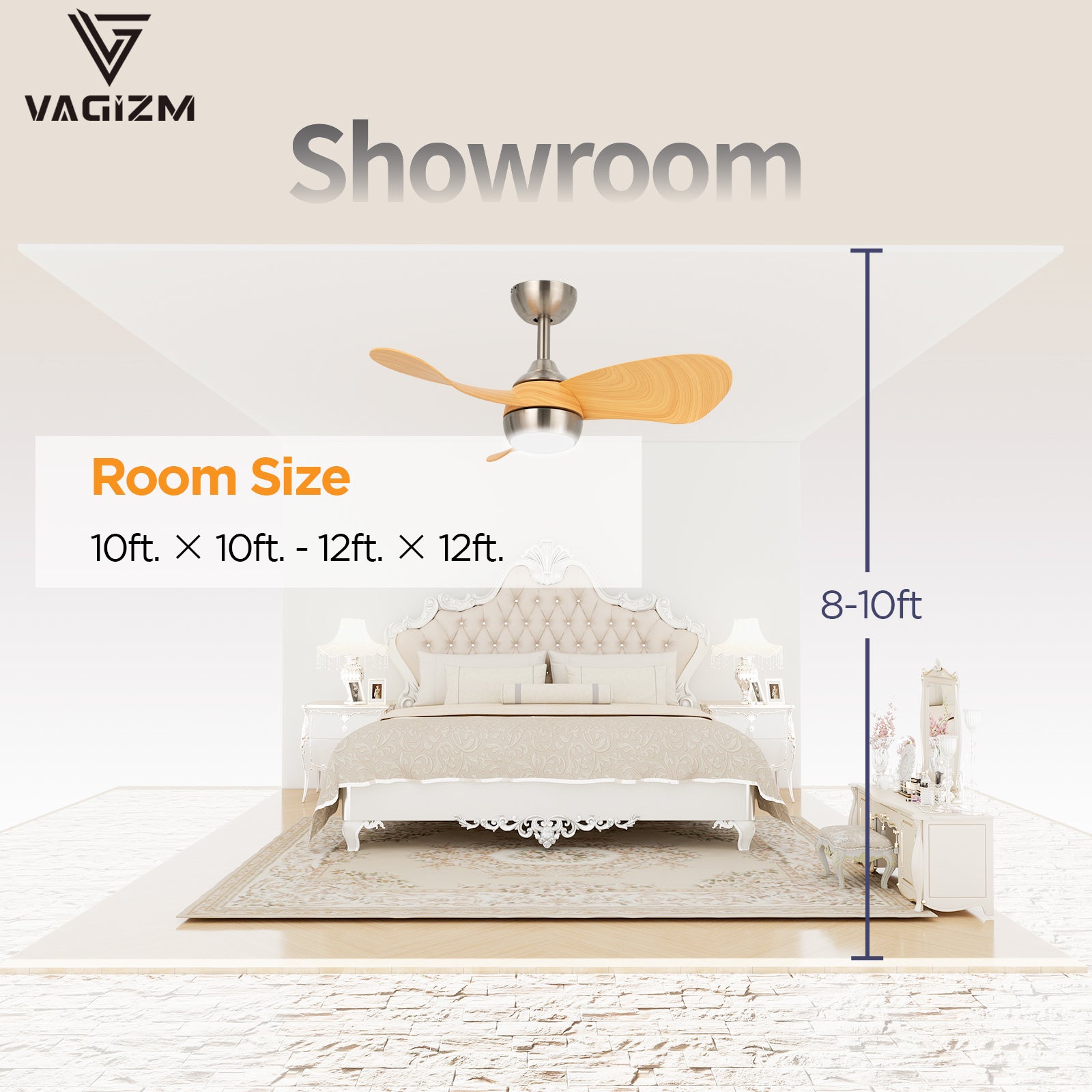 - Quiet Ceiling Fan for Small Room: Our Indoor ceiling fans are perfect for use in relatively small rooms and covered outdoor spaces. Thanks to the 30” size and flush mount design, our design is perfect for nursery or 10ft x 10ft ~ 12ft x 12ft rooms, in bedrooms, kitchens, offices or patios, gazebos and pergolas.