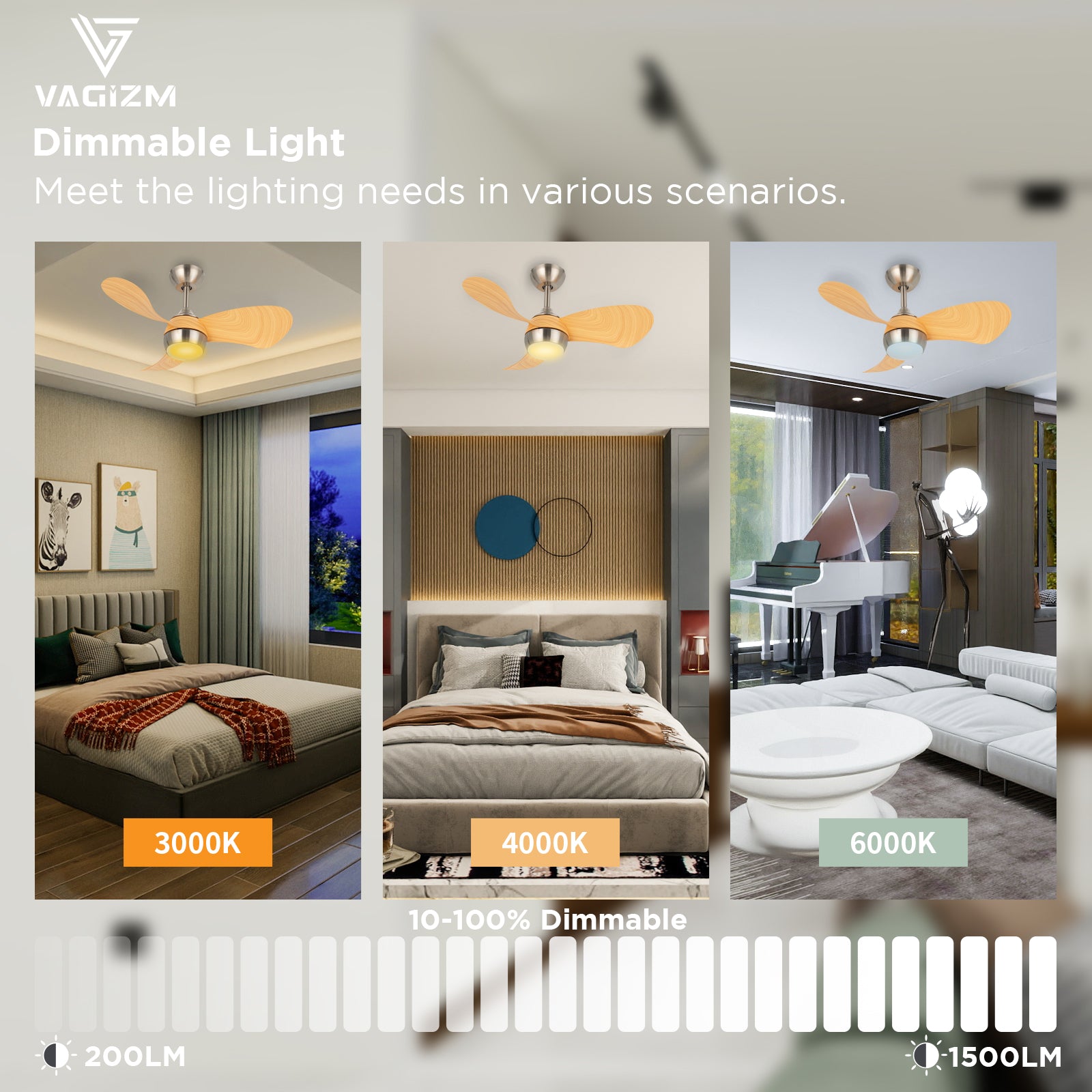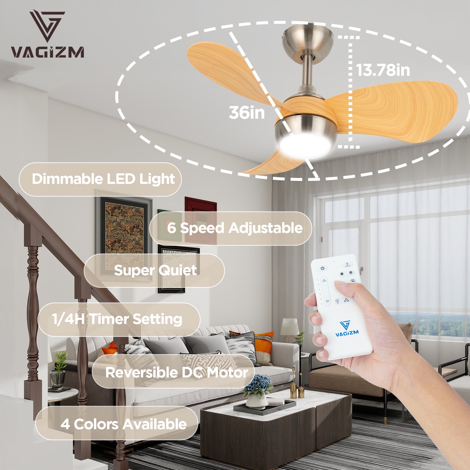 - Small Ceiling Fan: The 30” flush mount ceiling fan with light features a low profile design that eliminates the hanging rod, so you won't bump your head even in small rooms. The small ceiling fan with light and remote is also equipped with a variety of features: light memory, color temperature adjustment, reversible DC motor, timer function and more.