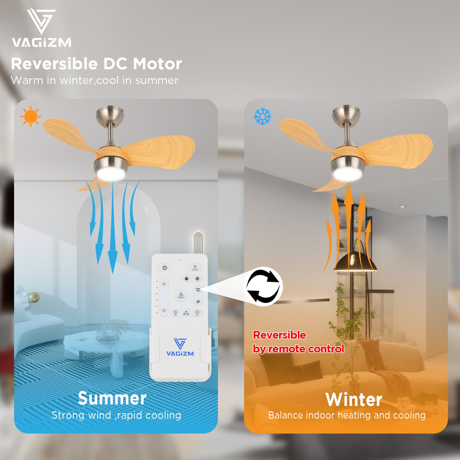 - Powerful Reversible Motor: The 30” ceiling fan with led light uses a high speed DC motor to give you the ultimate experience even with a small ceiling fan. Experience optimal airflow all year round.With 6 wind power modes to choose from (from gentle breeze to powerful airflow) and reversible blade direction, it can cool down and bring you a touch of coolness in summer. In winter it can promote air circulation and spread warm airflow all over your room.