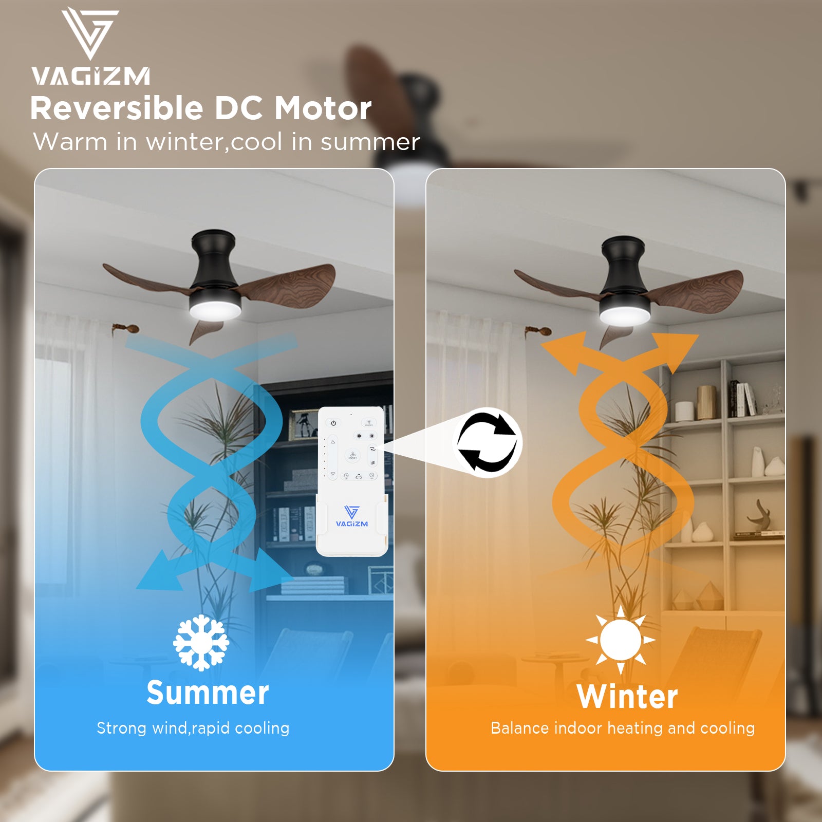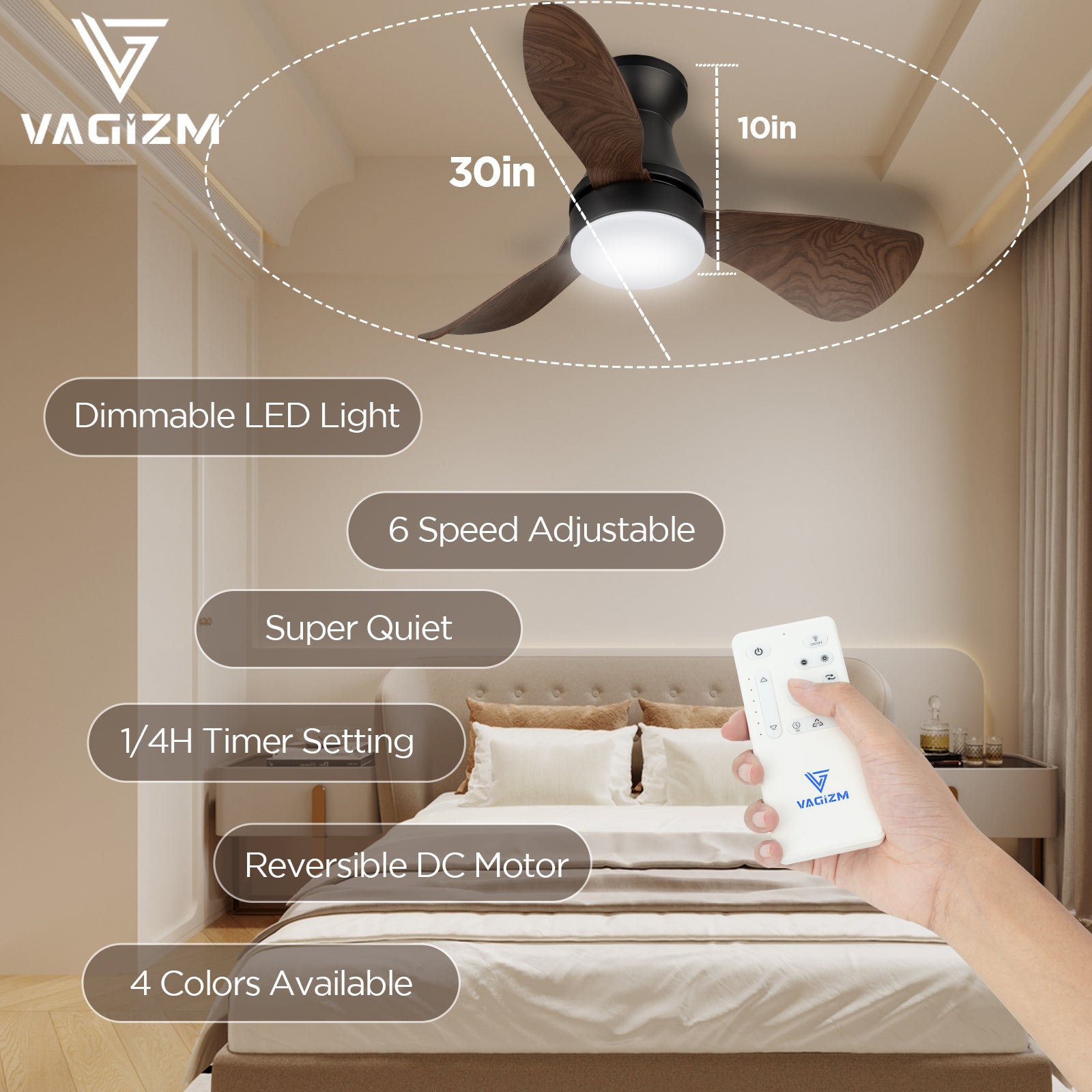 - Small Ceiling Fan: The 30” flush mount ceiling fan with light features a low profile design that eliminates the hanging rod, so you won't bump your head even in small rooms. The small ceiling fan with light and remote is also equipped with a variety of features: light memory, color temperature adjustment, reversible DC motor, timer function and more.