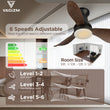 - Powerful Reversible Motor: The 30” ceiling fan with led light uses a high speed DC motor to give you the ultimate experience even with a small ceiling fan. Experience optimal airflow all year round.With 6 wind power modes to choose from (from gentle breeze to powerful airflow) and reversible blade direction, it can cool down and bring you a touch of coolness in summer. In winter it can promote air circulation and spread warm airflow all over your room.