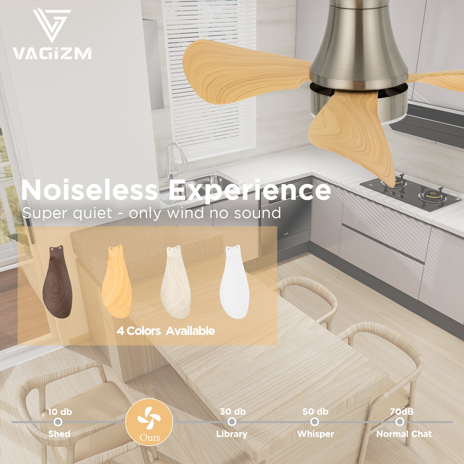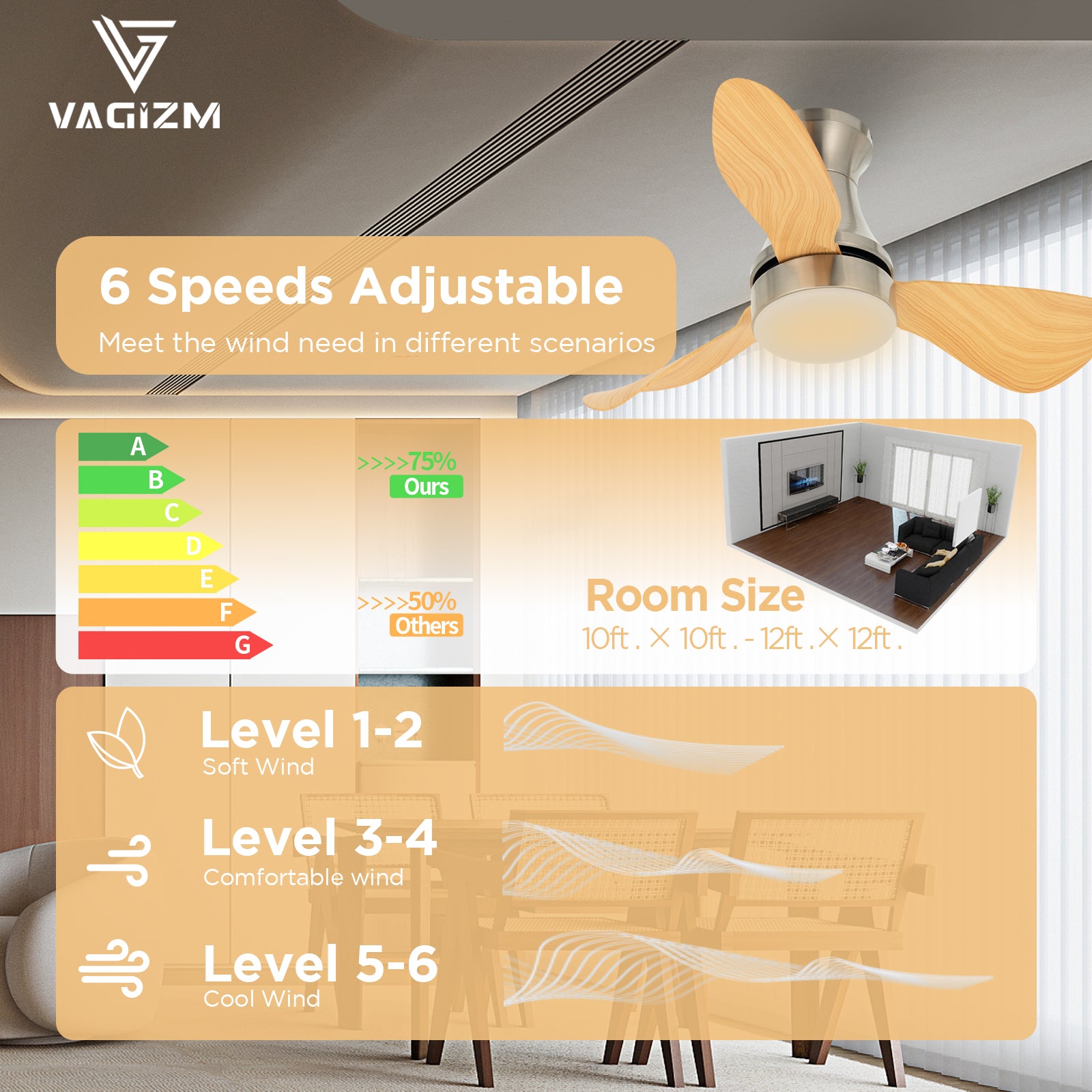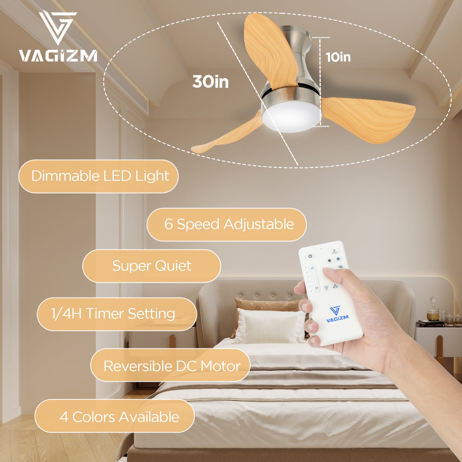 Vagizm 30 Inch Brushed Nickel Flush Mount Modern LED Ceiling Fan with Remote Control