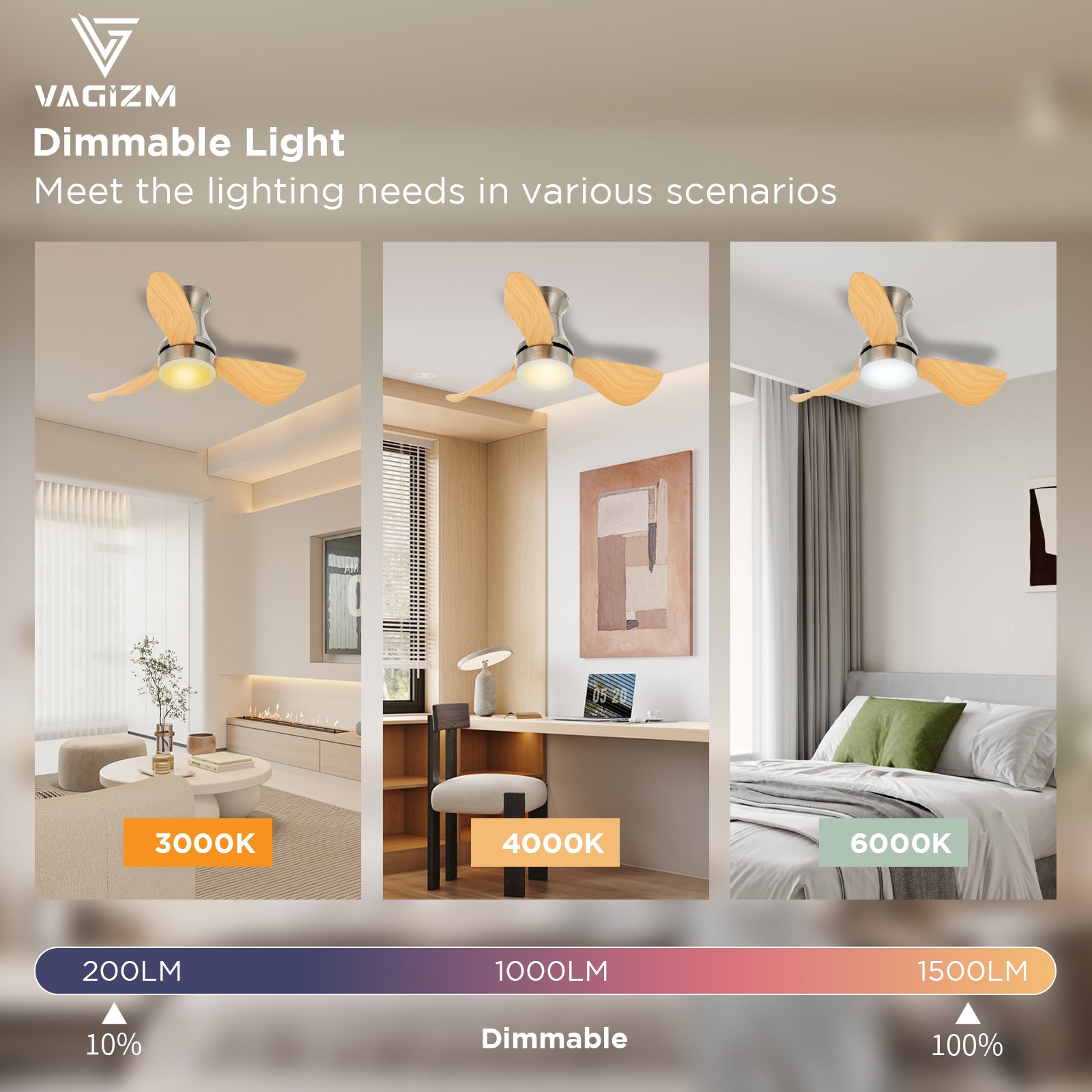 - Small Ceiling Fan: The 30-inch ceiling fan with light uses a short rod so you won't hit your head, even in small rooms. This small ceiling fan with light and remote control also comes with a variety of features: light memory, color temperature adjustment, reversible DC motor, timer function, and more.