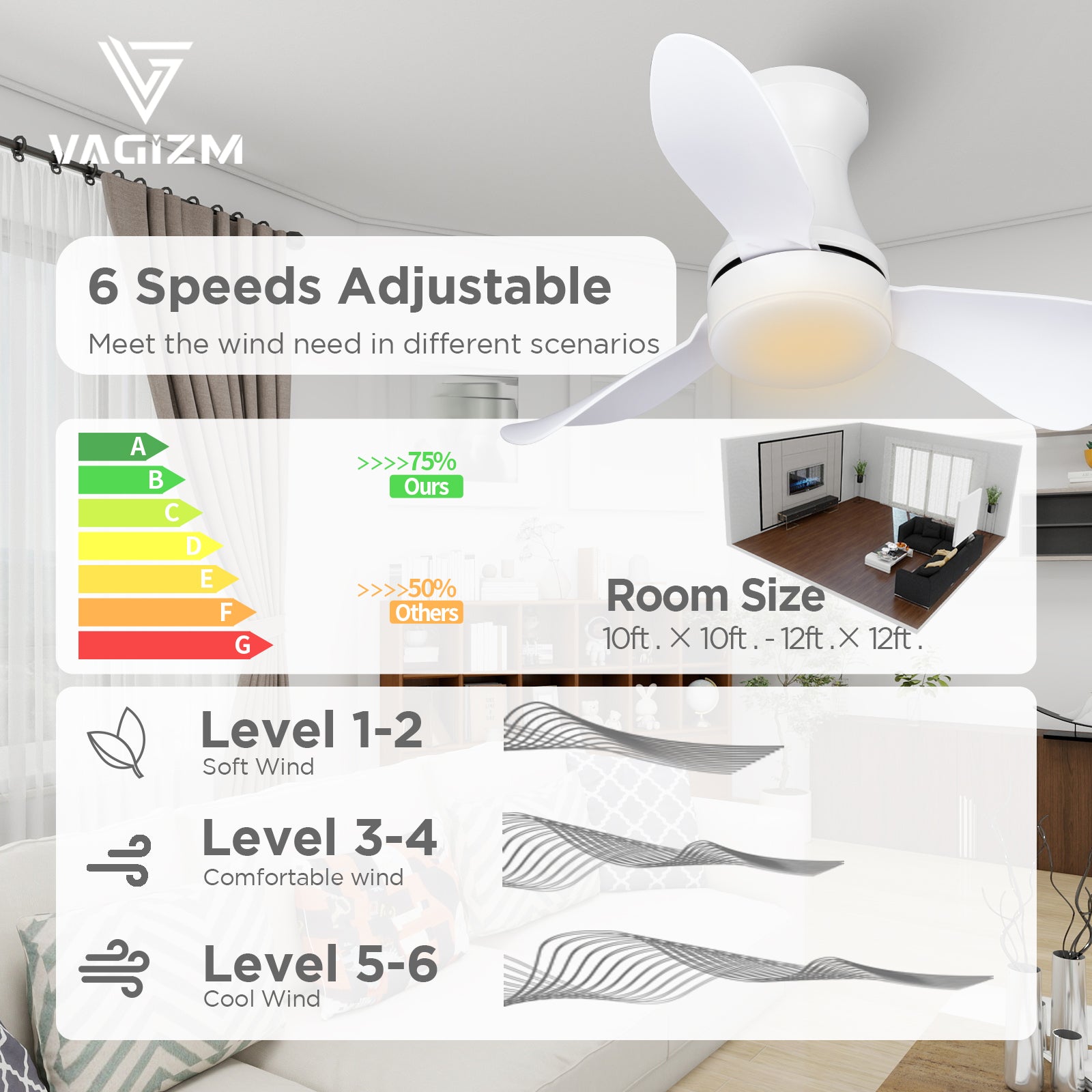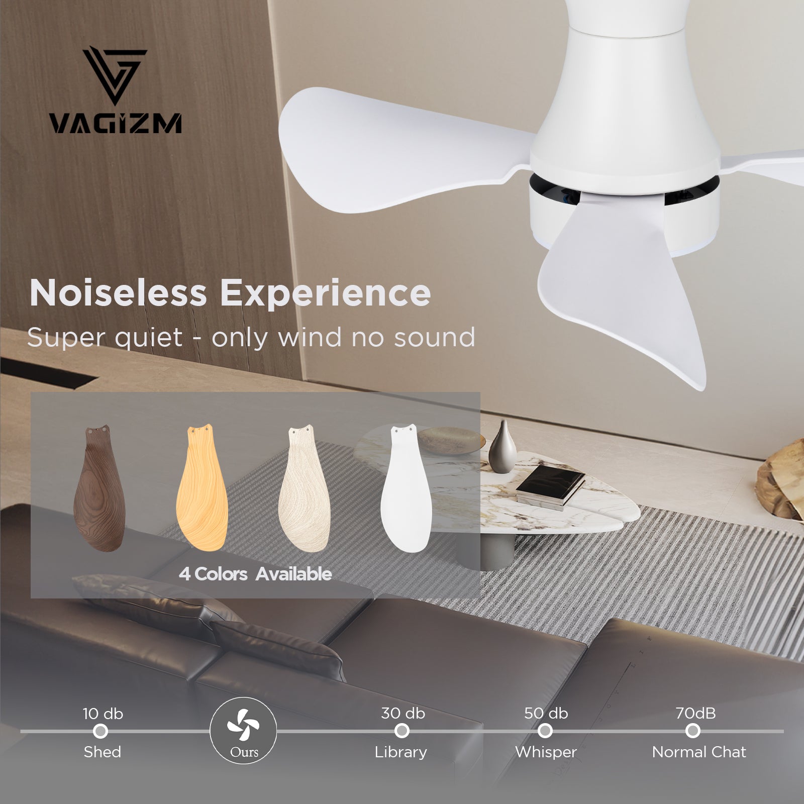 Vagizm 30 Inch Flush Mount Matte White Modern LED Ceiling Fan with Remote Control