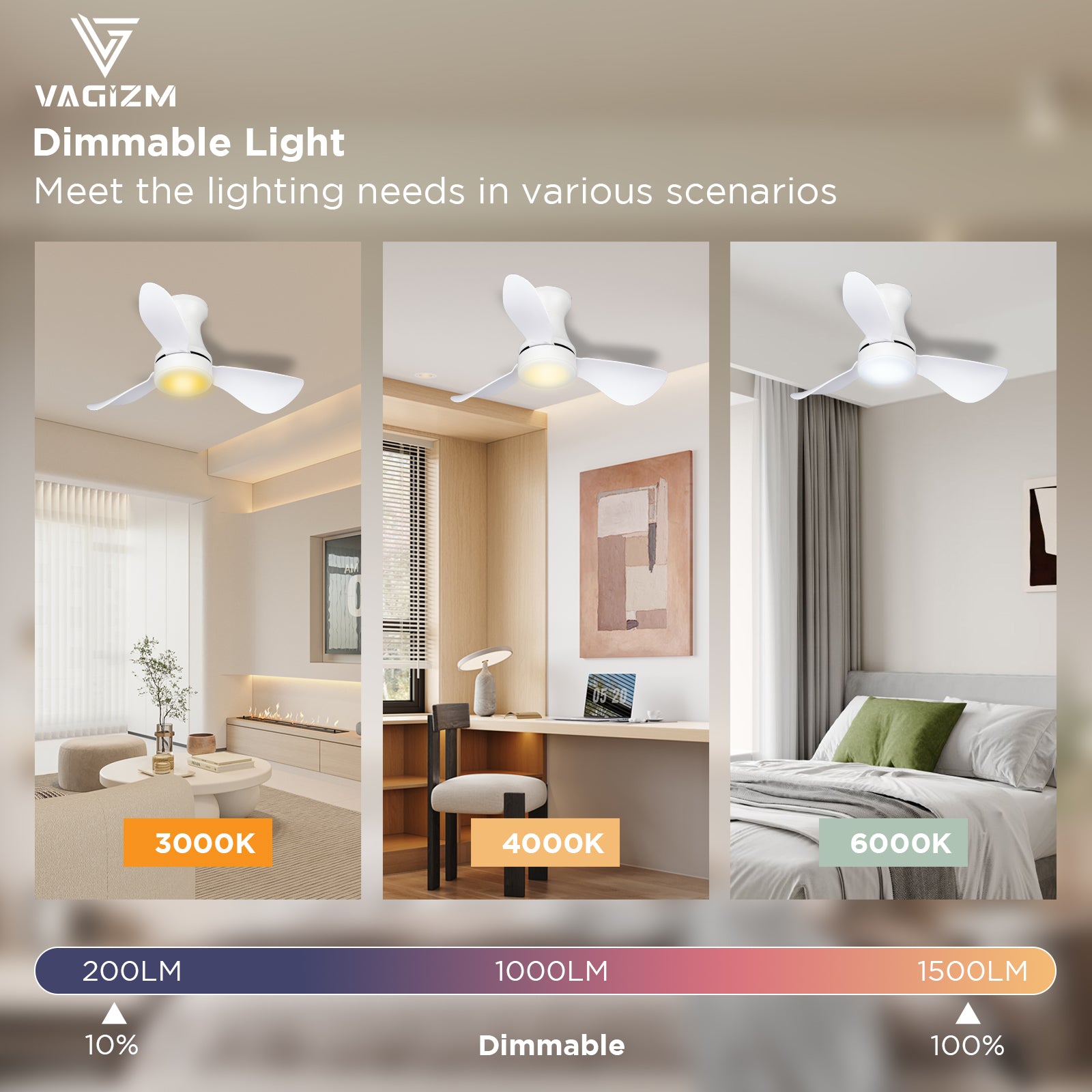 - Small Ceiling Fan: The 30-inch ceiling fan with light uses a short rod so you won't hit your head, even in small rooms. This small ceiling fan with light and remote control also comes with a variety of features: light memory, color temperature adjustment, reversible DC motor, timer function, and more.