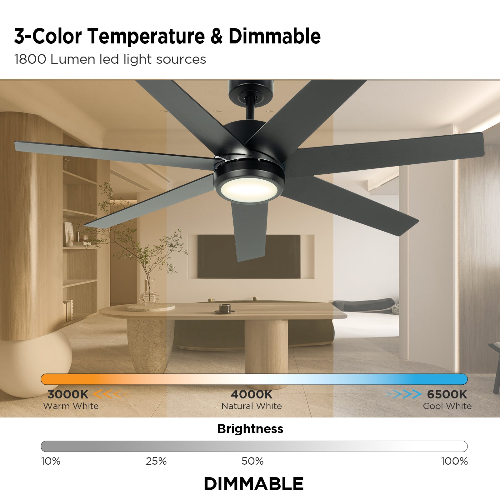 - Light Dimming: The ceiling fan comes with a lighting function, LED light can be controlled to provide cool white light, natural light and warm yellow light 3 color temperatures, adjustable brightness of the 18W power LED light source to meet your lighting needs. Meanwhile, the light has a memory function, after the light lasts for 15 seconds, the current light setting will be maintained when the light is turned on again.