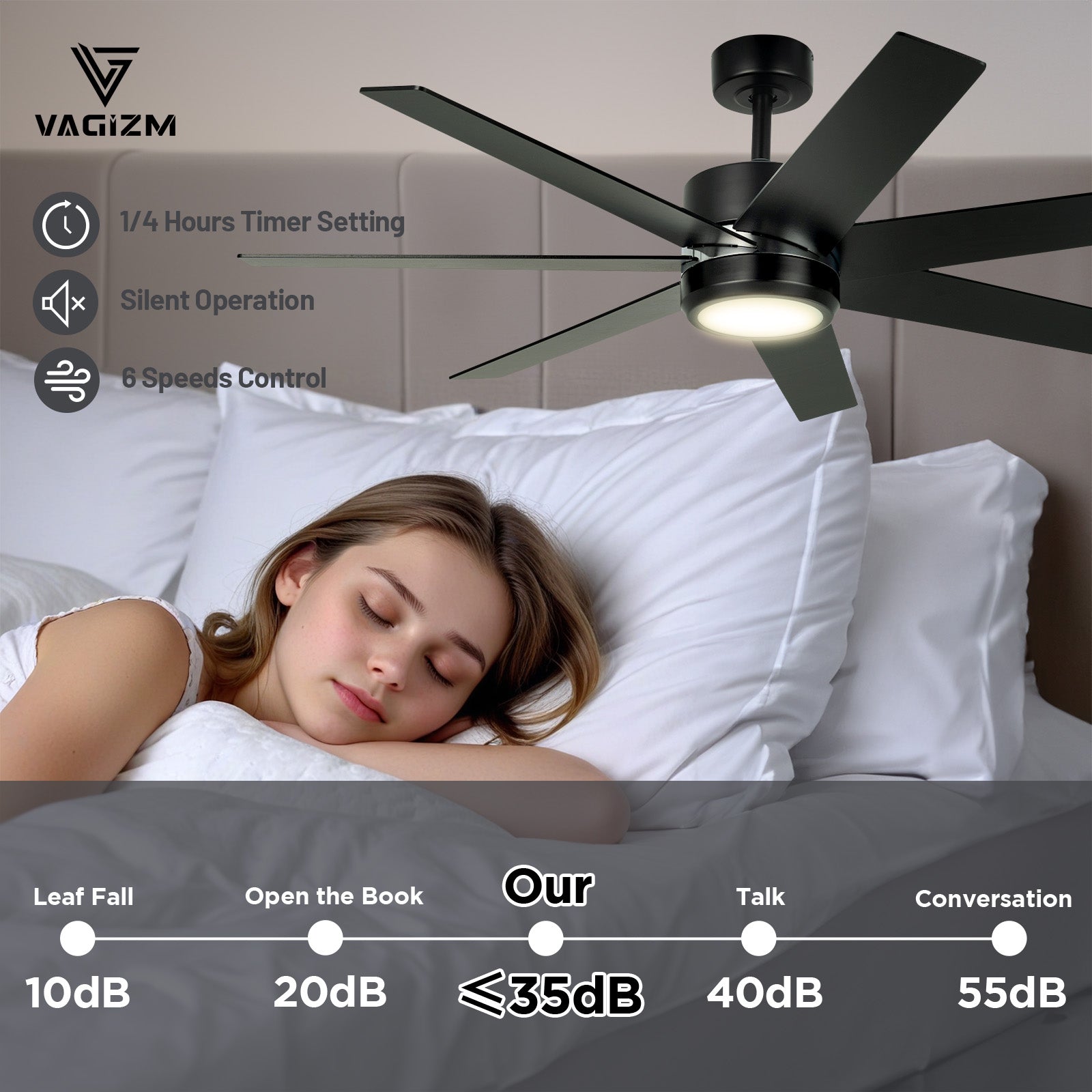 - Comfortable Atmosphere: High-quality fan blades and the delicate construction of the ceiling fan expand the effective range of airflow and minimize noise during operation. Increased comfort. It remains as quiet as the ticking of an alarm clock at maximum speed and has a 1/3/6H timer shut-off function. It will provide you with a comfortable environment and bring baby-like sleep.